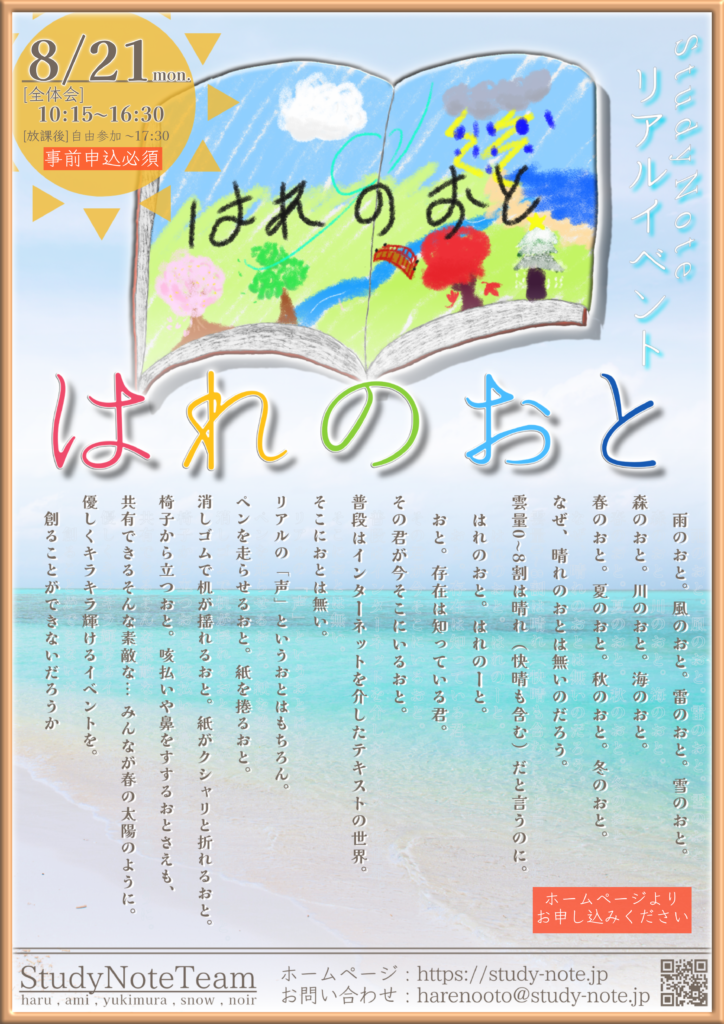 StudyNote一同、皆様のご参加こころよりお待ちしております☀️